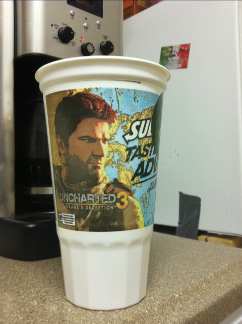 The Subway stores in my area have finally started to support the Taste for Adventure program, and last night I picked up a special 30oz soda with the intention to use it to play Uncharted 3 a month early.