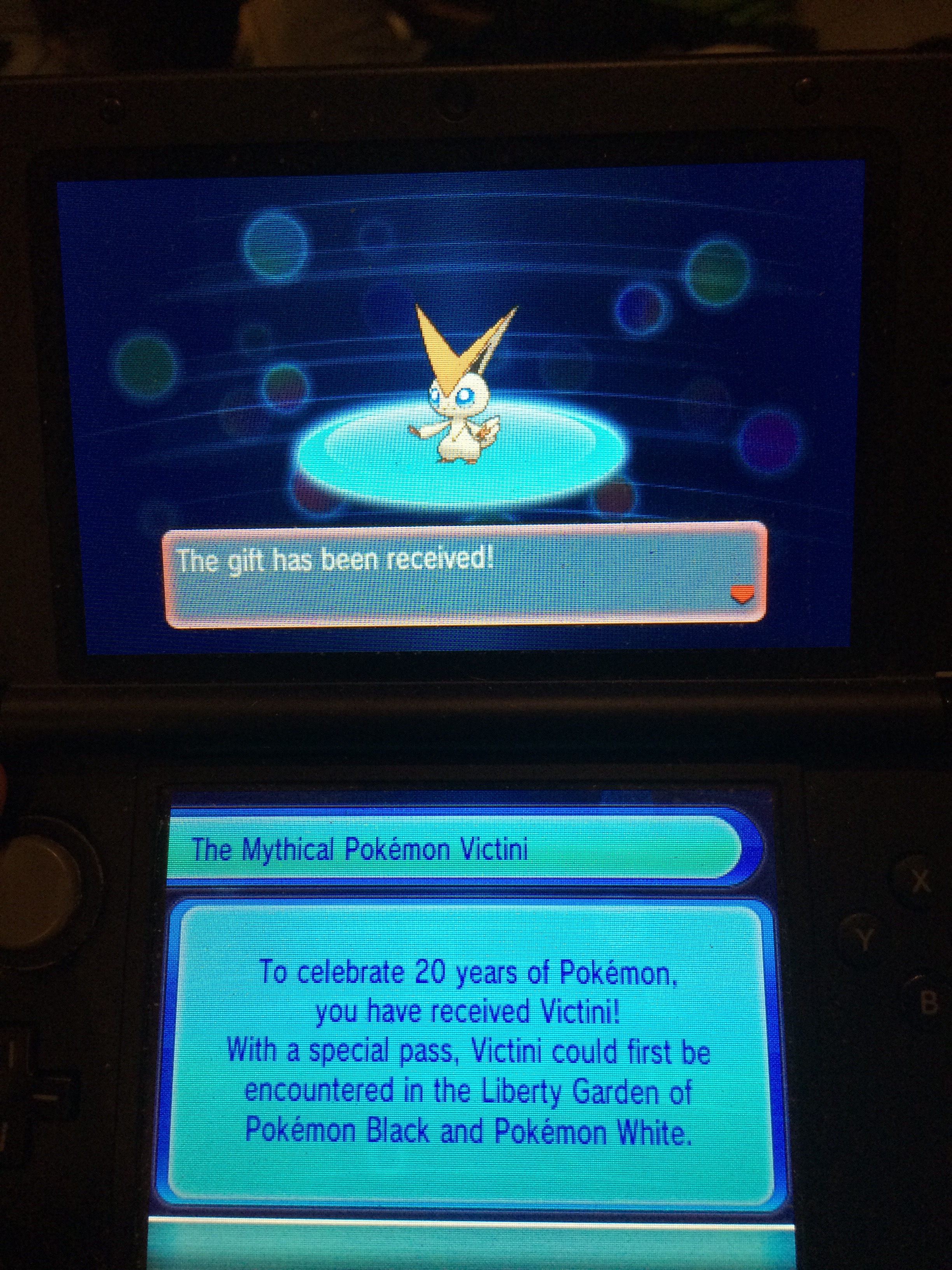 To get your own Victini, simply fire up any copy of a Generation 6 Pokémon game, select Mystery Gift from the main menu, and select the option to receive a gift from the Internet.