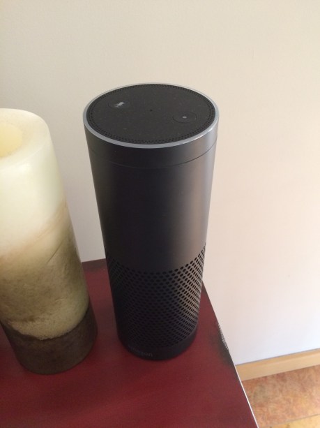 The Amazon Echo is slightly wider than the width of an aluminum can and about the height of a candle. It has only one input for its power adapter, and features a mute button and a pairing button on top. Volume control is handled by an integrated dial on top of the speaker, which I absolutely love. The rest of the device is taken up by an omnidirectional speaker. The Echo does not have a battery so it will deactivate when unplugged.